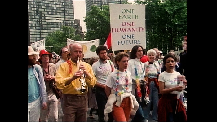 On June 12, 1982, over one-million people gathered in New York City to call for an end to the nuclear arms race. Presented in a fast-paced, up-beat style, CHOOSE LIFE captures the feeling and spirit of this historic day. “One Earth, One Humanity, One Future” reads a banner, as the camera pans across a colorful sea of people marching in front of the United Nations on their way to gather in Central Park. Americans from all walks of life are asked why they came to march: an elderly man, a union organizer, a high school student, a mother with young children. Their answers come straight from the heart: “We're here because we want to live.” “It's an issue of survival.” “Unless the people take to the streets, the governments will not act.” Forty years later, their testimonies are more timely than ever. (9 minutes)
